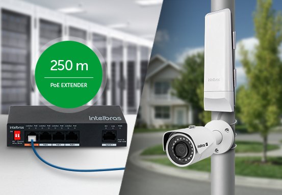 Alimentação de dispositivos IP em longo alcance com a função PoE Extender embarcada no produto.